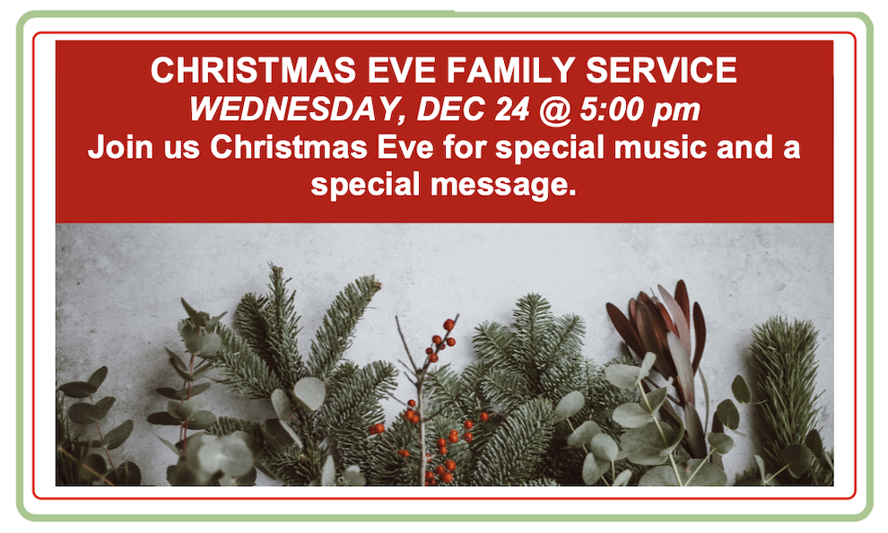 *Christmas Eve Family Service: Sunday, Dec 24 @ 5:00 pm