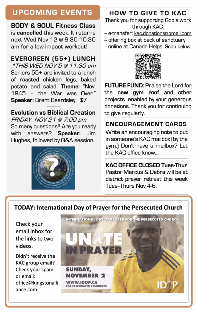 The autumn season is underway and there’s lots happening at KAC! Pastor Marcus continues the “Spirit-Filled Life” series in Acts chapters 3 and 4. (Check it out here.)