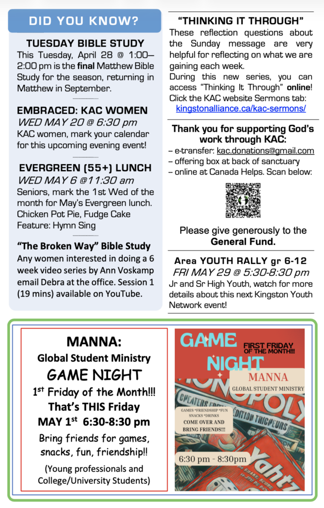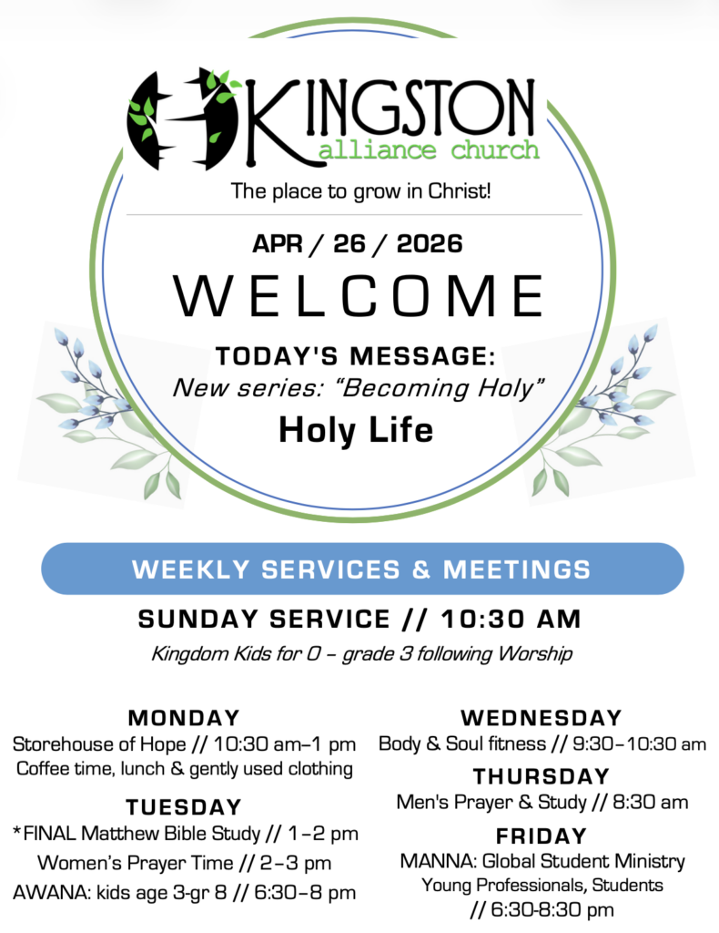 Pastor Marcus continues the new series, “Becoming Holy,” on Sundays at 10:30 am. NEW! “Thinking it Through” reflection questions for the Sunday message. For Sun Apr 19: Thinking it Through: Grace & Peace. Available each week on the Sermons page. (For more info about Spring Programs, click here.)