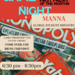 The first Friday of the month is GAME NIGHT for MANNA Global Student Ministry!